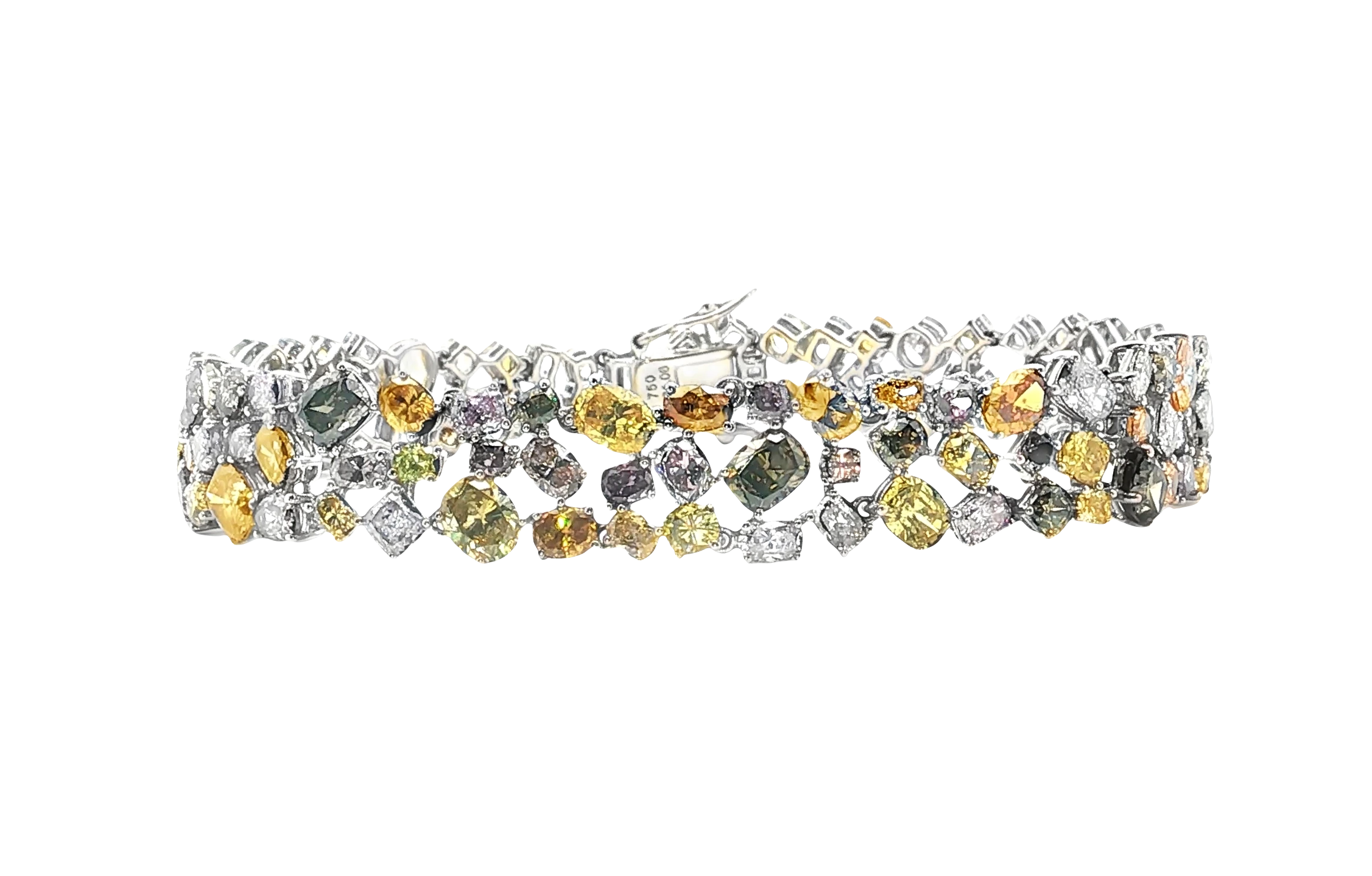 Indulge in the radiance of this exquisite tennis bracelet, masterfully crafted in gleaming white gold over silver. This captivating piece showcases fancy yellow diamonds in cushion shape with brilliant cutting style. This bracelet is a harmonious blend of timeless elegance and modern flair.